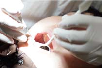 2013年9月24日,色漫网 口腔科接诊了一位奇特的患者,因为该患者的年龄只有4天,也是口腔科有史以来接待的年龄最小的患者了。经口腔科袁会诚主任确诊,该“小患者”在下门牙的位置长了2颗明显的乳中切牙,又名“诞生牙”。经过综合考虑,并与家长协商后决定拔除...