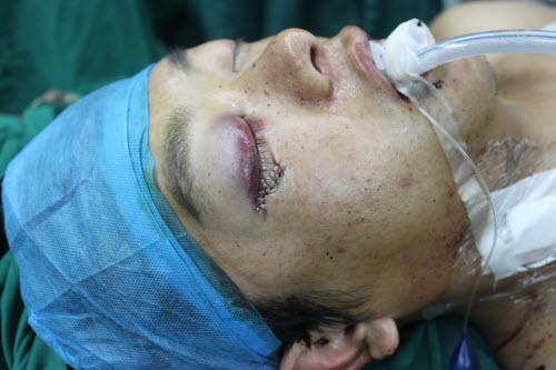 早上9点,急诊科接到一位特殊的病人。该病人在凌晨5点多睡觉时被同屋的工友用匕首刺入右眼眶下,疼痛流血不止。送到当地医院无法处理,由120送入我院。接到病人时,所有在场人员都惊呆了:是什么样的深仇大恨,如此狠毒的将匕首插入同伴头颅!