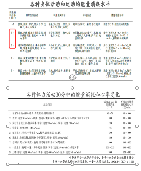 例如,患者最大心率160次/min、静息心率70次/min、选择的运动强度为60%,则其运动训练的目标心率=(160-70)× 60%+70=124次/min。其中“最大心率”=220-年龄。