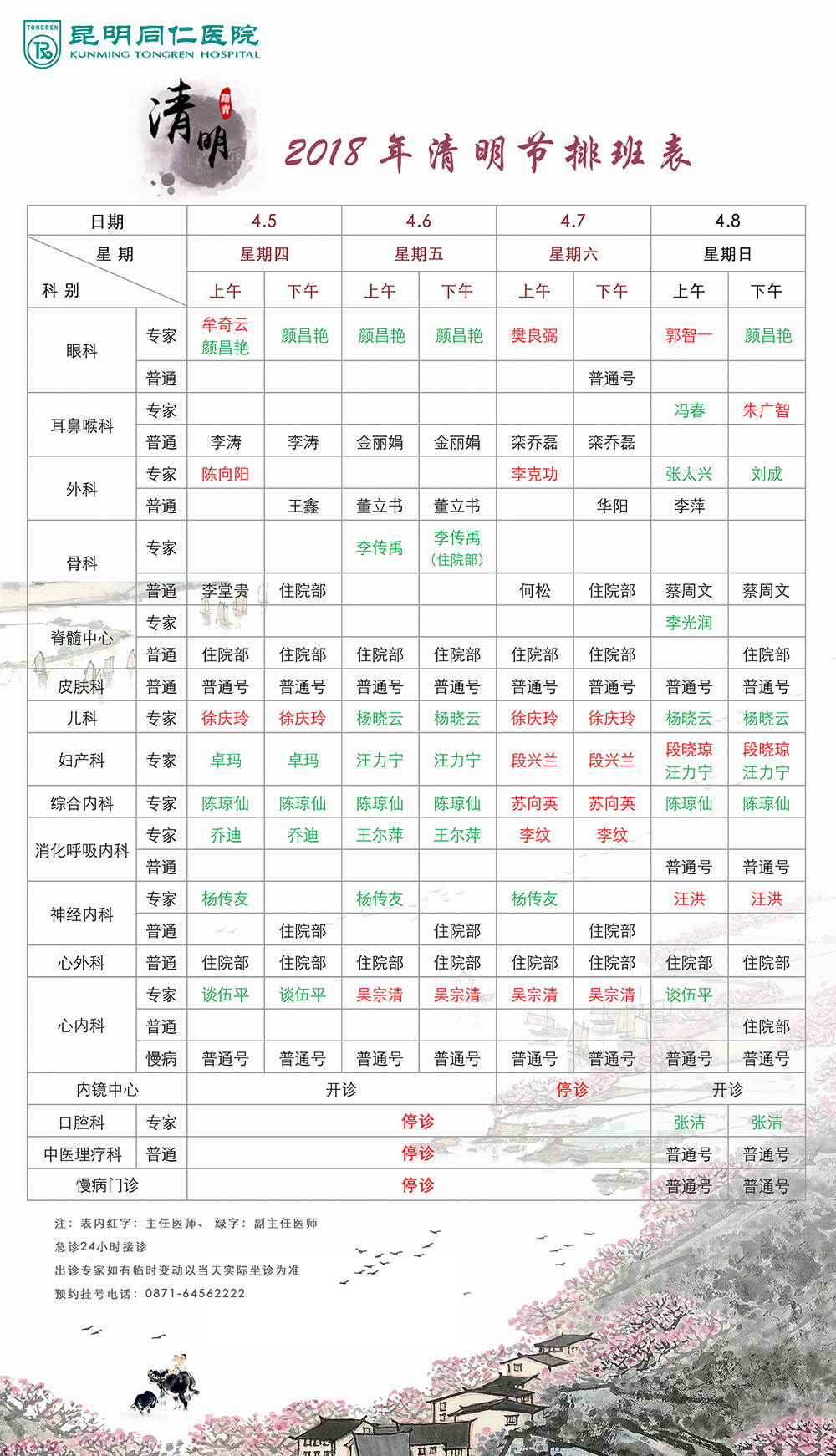 色漫网 实行“无假日门诊”,4月5日—4月7日,清明节假日期间门诊正常开诊,急诊24小时接诊。大家可以电话或网上预约挂号!出诊专家如有临时变动以当天实际坐诊为准。咨询预约电话:0871-64562222。