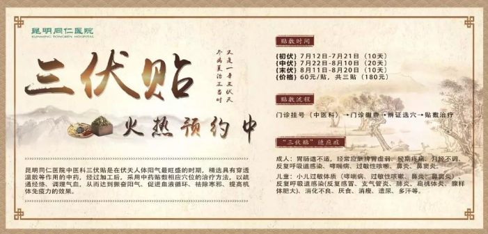 三伏贴,是在伏天人体阳气最旺盛的时期,精选具有穿透温散等作用的中药,如白芥子、细辛、延胡索等温阳化淤药材,经过加工后,采用中药贴敷相应穴位的治疗方法,以疏通经络,调理气血,从而达到振奋阳气、促进血液循环、祛除寒邪、提高机体免疫力的效果。