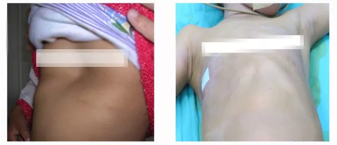 2.影响孩子的心肺功能:漏斗胸畸形压迫心肺,心脏受压移位,肺也因胸廓畸形而影响了肺功能,导致一运动心肺功能跟不上,甚至导致心慌、气短、呼吸困难、心衰。