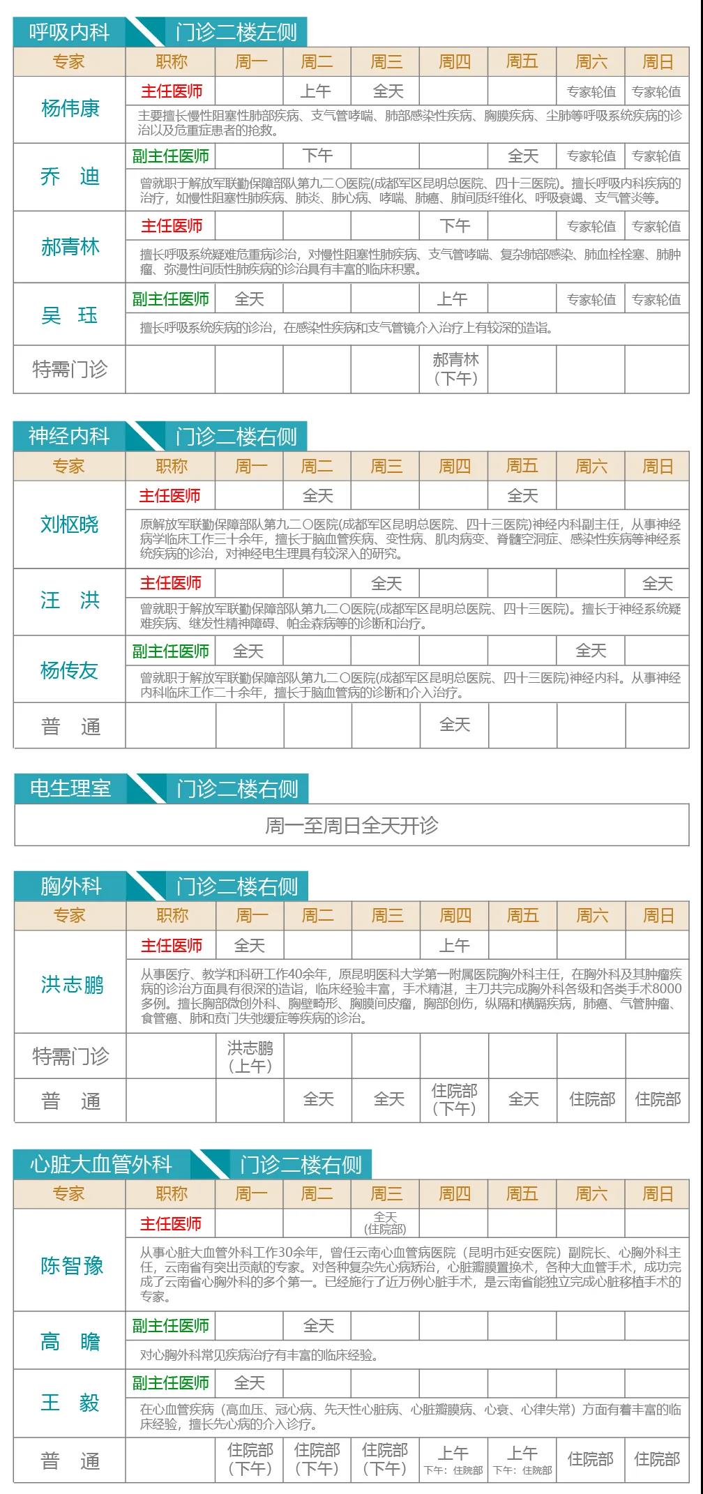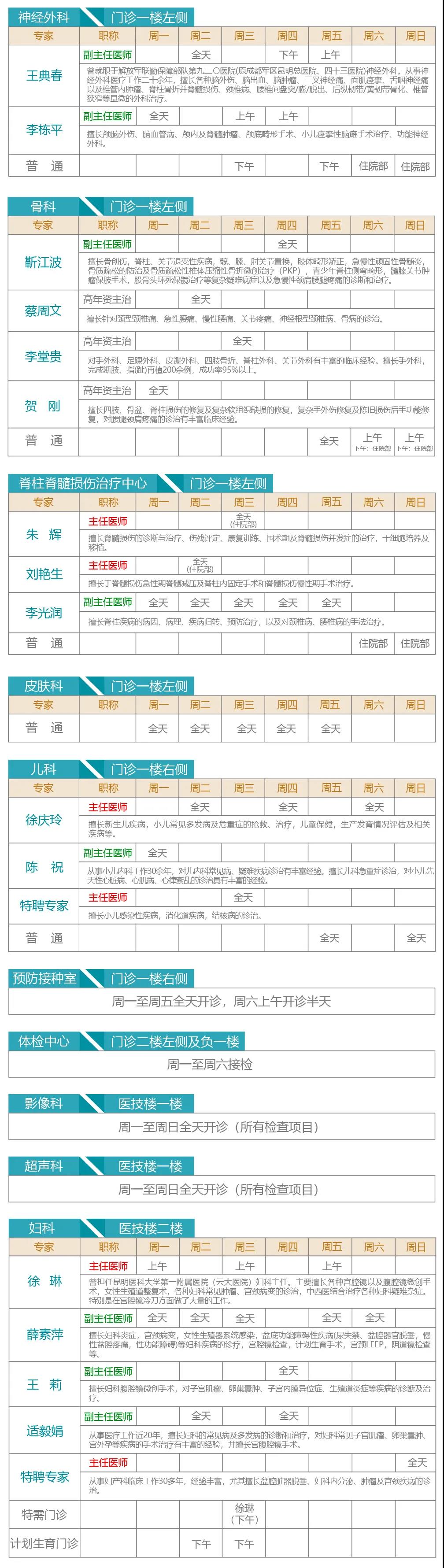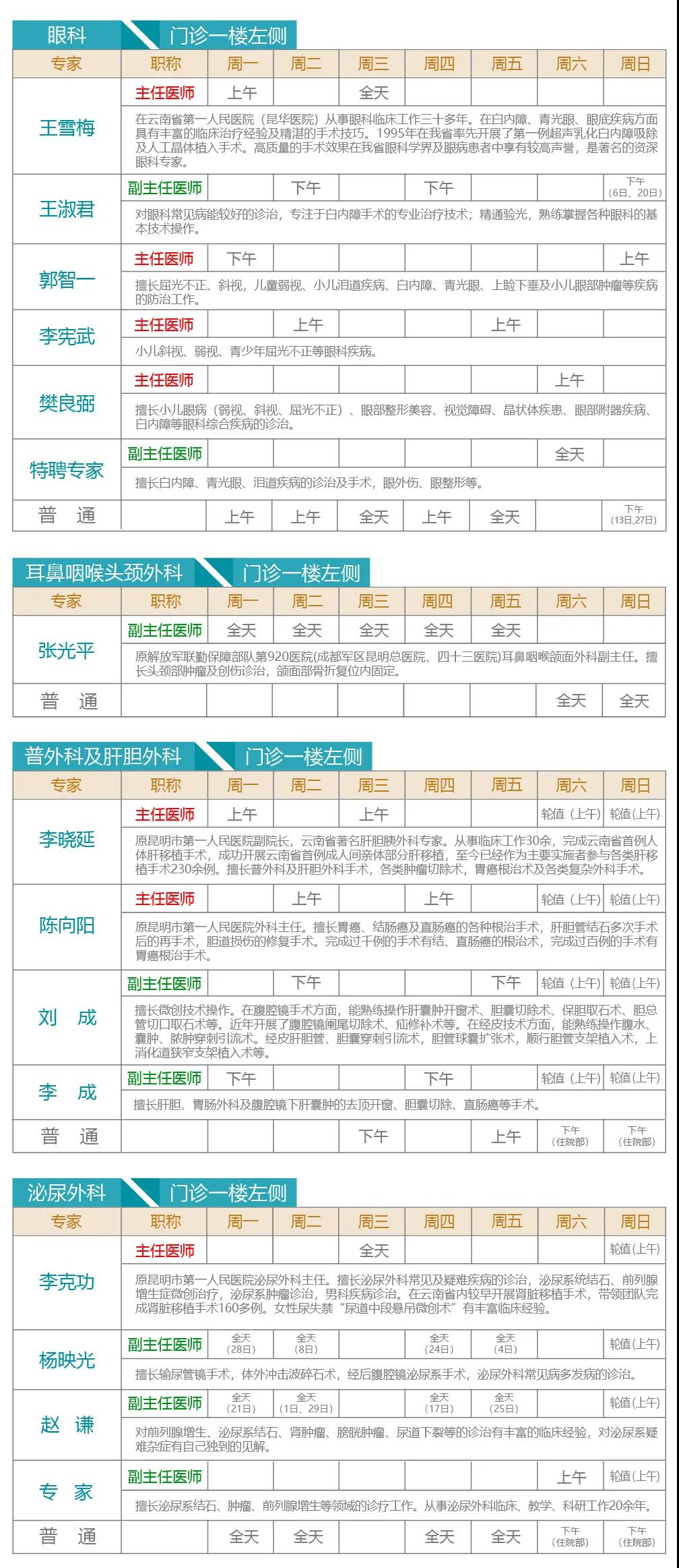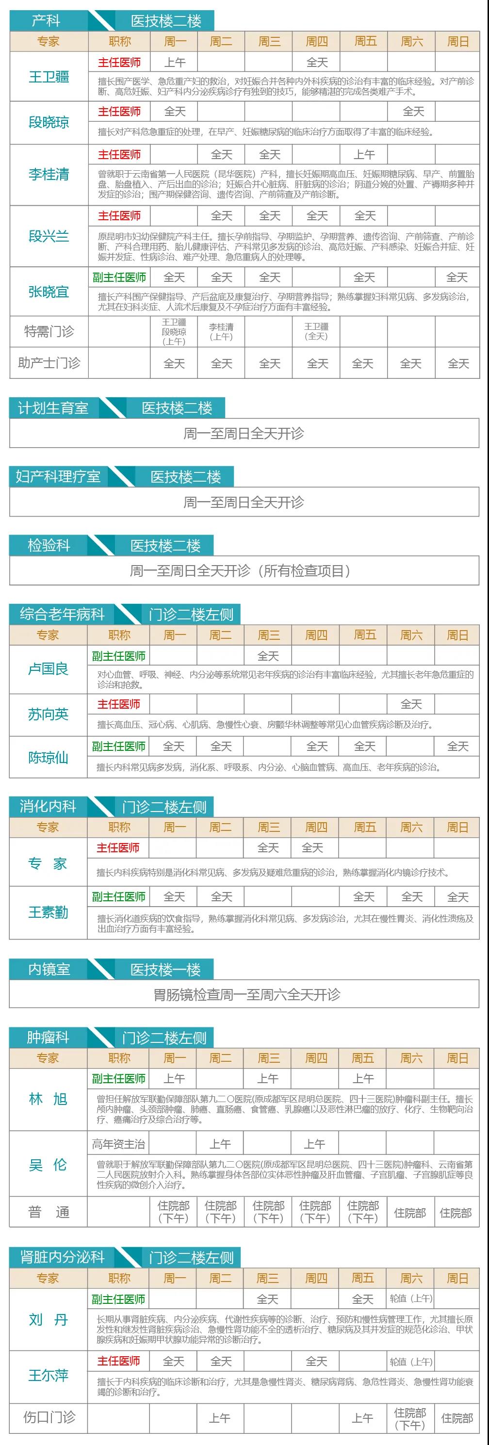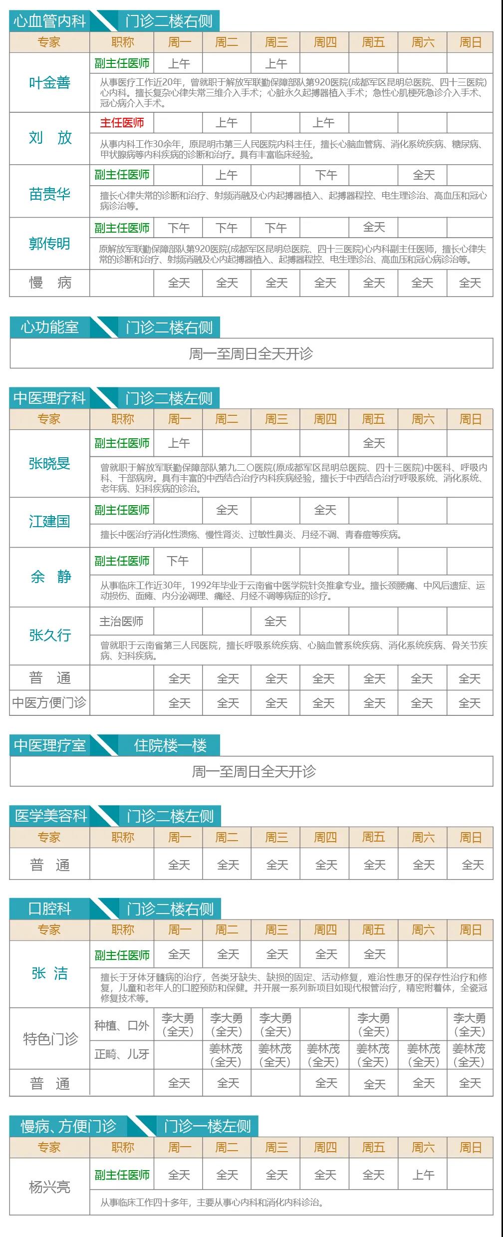 注:出诊专家如有临时变动以当天实际坐诊为准。 健康热线:0871-64562222。 急诊科24小时全天候接诊。