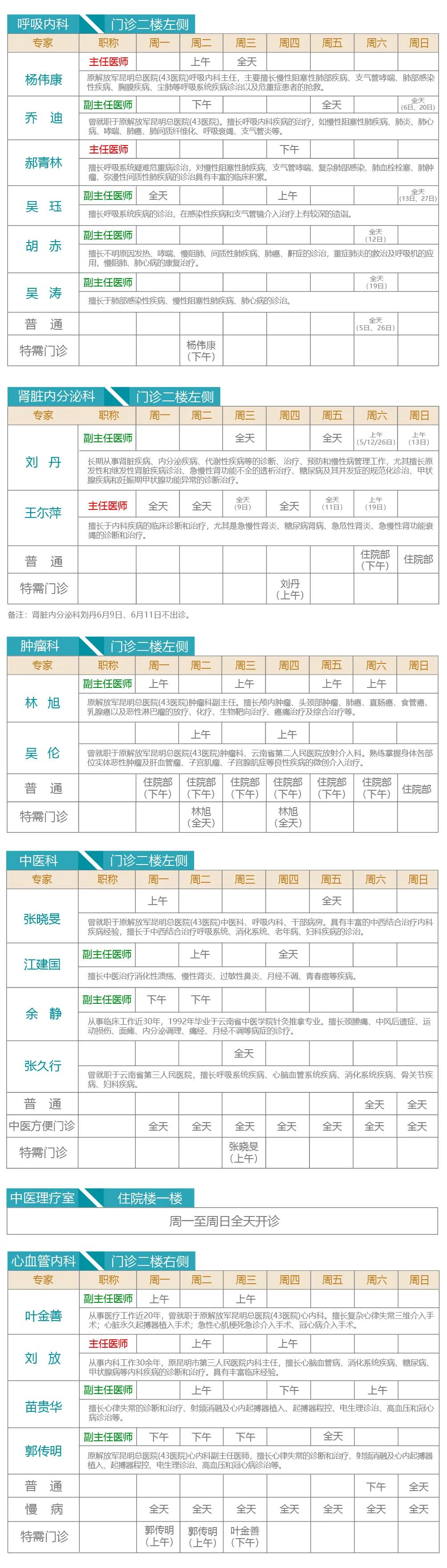 注:出诊专家如有临时变动以当天实际坐诊为准。