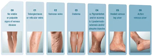 下肢静脉曲张这种疾病的进展是非常缓慢的,一般持续数年甚至数十年,所以疾病的发展也分为几个阶段。起初仅表现为下肢浅静脉外观上的异常增粗扭曲和膨大凸起,而并不伴随其它的临床不适症状。病情进一步发展,随之而出现久坐、久站后的下肢胀痛不适,活动后症状会减轻。长久的静脉曲张,血液淤滞在膨大扩张的静脉内,最终产生淤积性皮炎,色素沉着和慢性硬结型蜂窝组织炎,或者形成溃疡。更严重的还会并发静脉血栓,血栓脱落有可能危及生命。