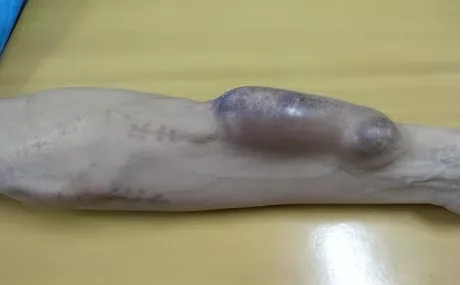 我们血透患者俗称的瘘管鼓包被称为动脉瘤。即部分患者自体内瘘术后数月或数年后发生扩张致出现瘤样隆起,瘤体内径常超过相邻正常血管内径3倍以上、且内径>2cm。动脉瘤分为两种,一种叫真性动脉瘤,一种叫假性动脉瘤。真性动脉瘤所涉及的是血管壁的全层,假性动脉瘤是血管壁存在缺陷造成的。如果动脉瘤出现以下情况,需要及时的处理。