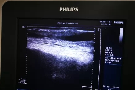 一般在穿刺前应该充分评估内瘘的震颤、杂音以及血管的弹性、质地。如有异常,不要盲目穿刺,避免内瘘失功。如果内瘘功能正常,穿刺后穿刺针内出现细条红色血栓,有可能是穿刺部位皮下有血栓,这个时候最好使用超声评估内瘘功能;必要时可以引导下穿刺内瘘,或重新评估穿刺点。还有种少见的情况是患者内瘘血管近心端有狭窄,导致穿刺段血管继发附壁血栓形成,有效管腔变窄、穿刺困难、血流不畅、血栓形成等。