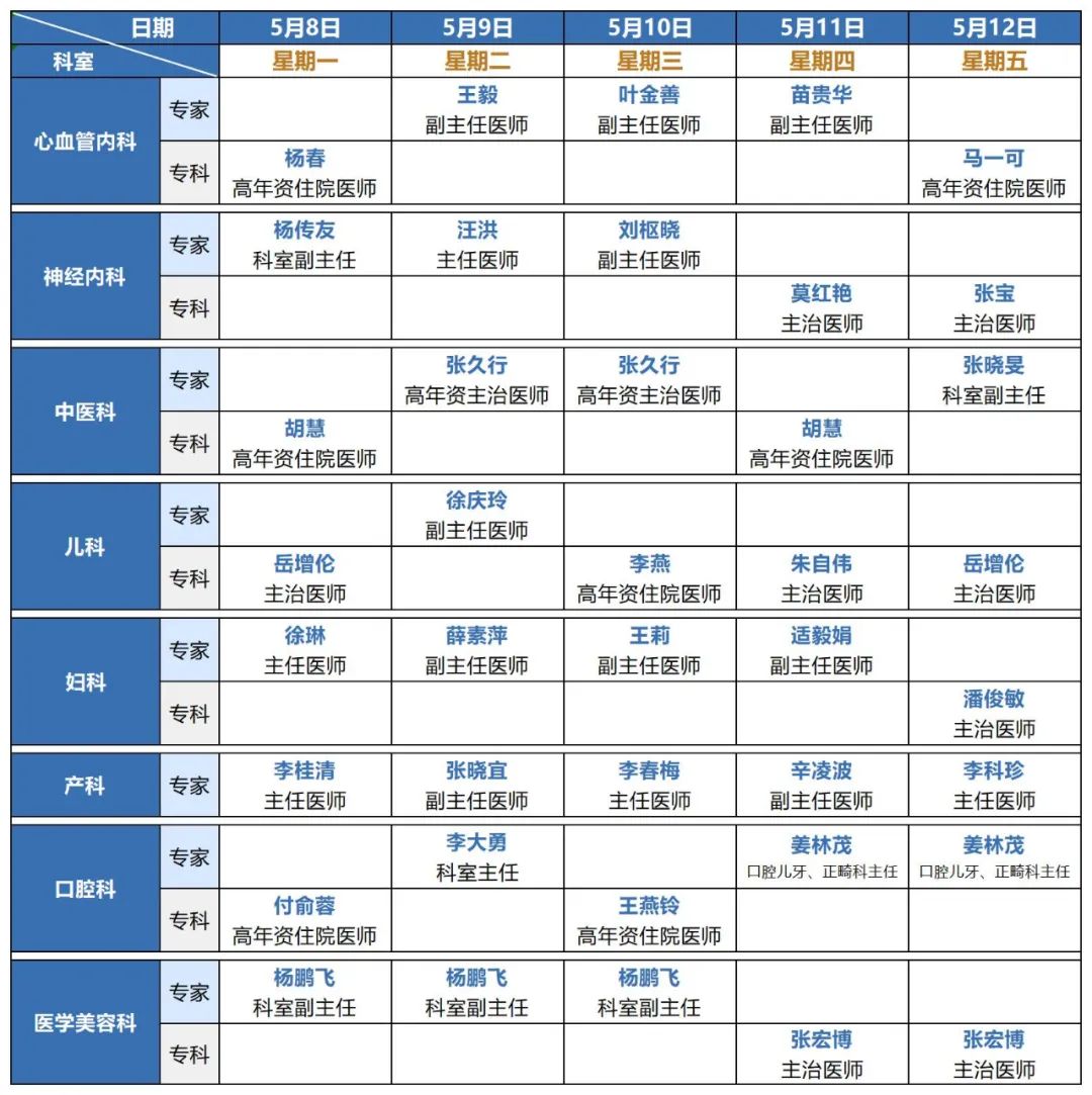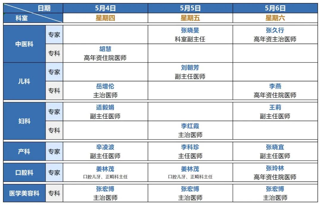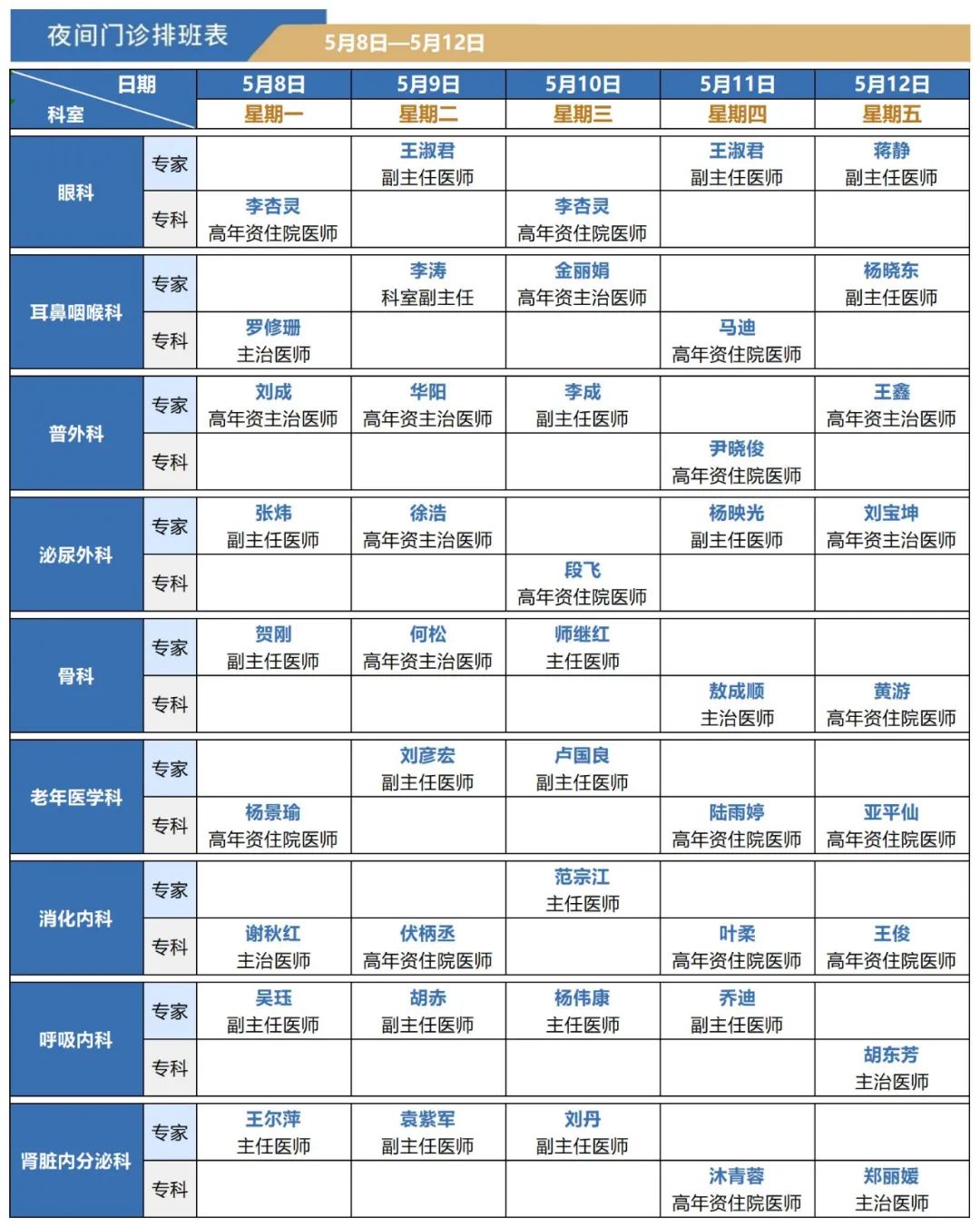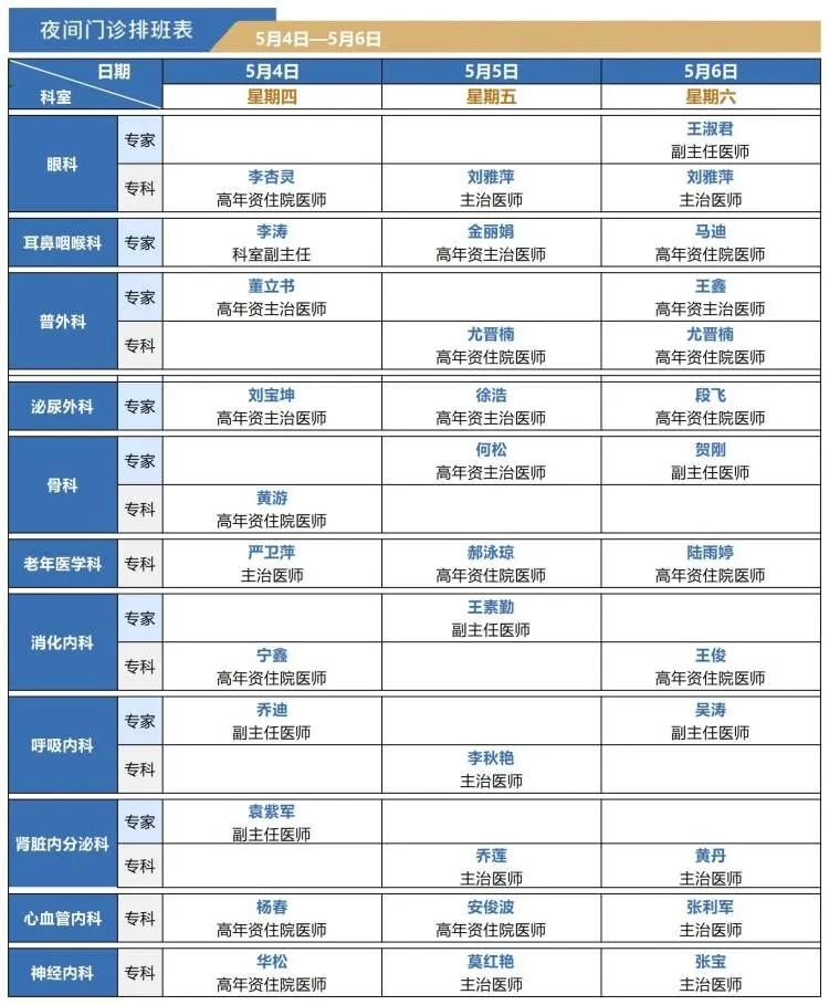 5月4日--5月12日夜间门诊排班表