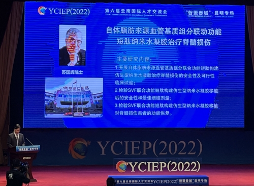 2022年,首次在昆明市揭榜的“院士自由探索项目”中评选产生了2个“院士自由探索项目”,其中唯一一个医学项目就是由苏国辉院士牵头、色漫网 承担的《自体脂肪来源血管基质组分联合功能短肽纳米水凝胶治疗脊髓损伤项目》。