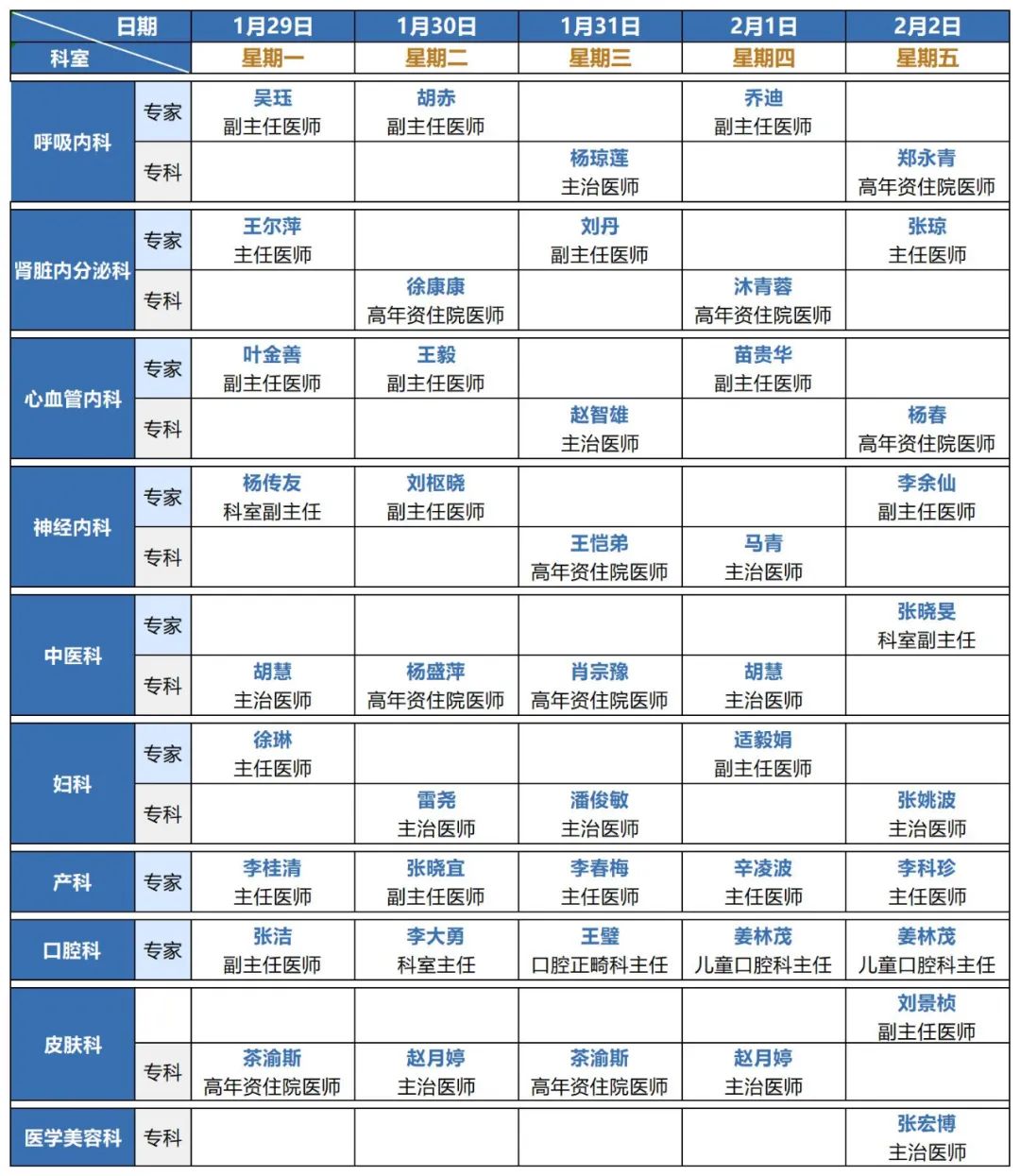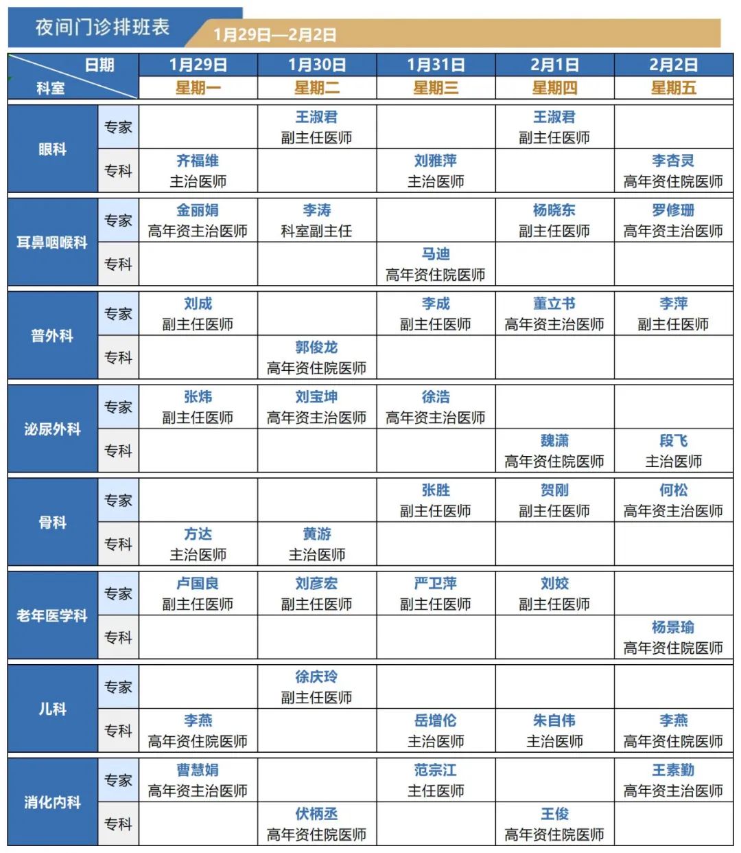专家坐诊信息早知道!色漫网 1月29日—2月2日夜间门诊排班